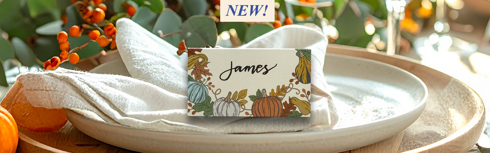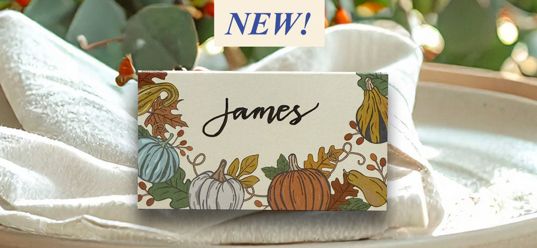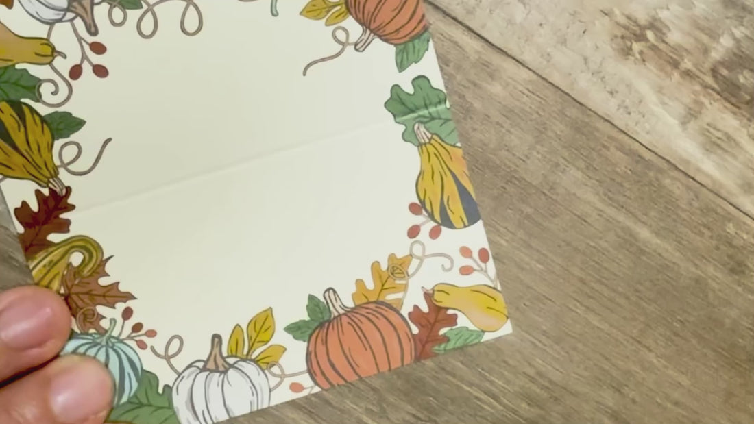 Thanksgiving Table Place Cards with Pumpkins and Gourds | Modern Fall Border Design | Made in the USA