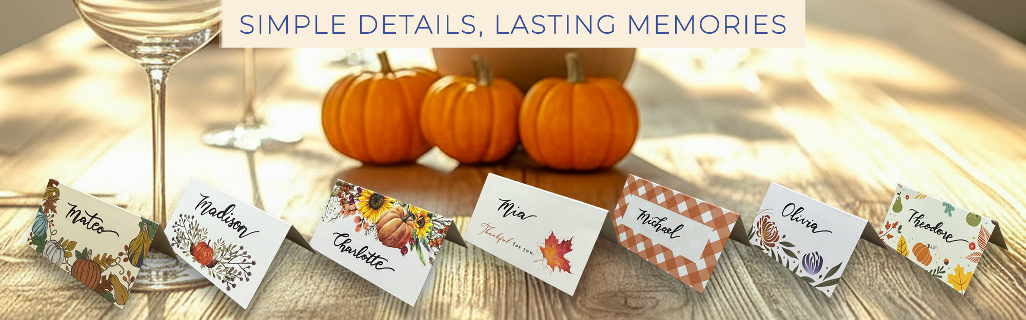 Thanksgiving Table Place Cards with Pumpkin and Fall Leaves | Tent Style Name Cards for Thanksgiving Dinner Setting | Made in the USA