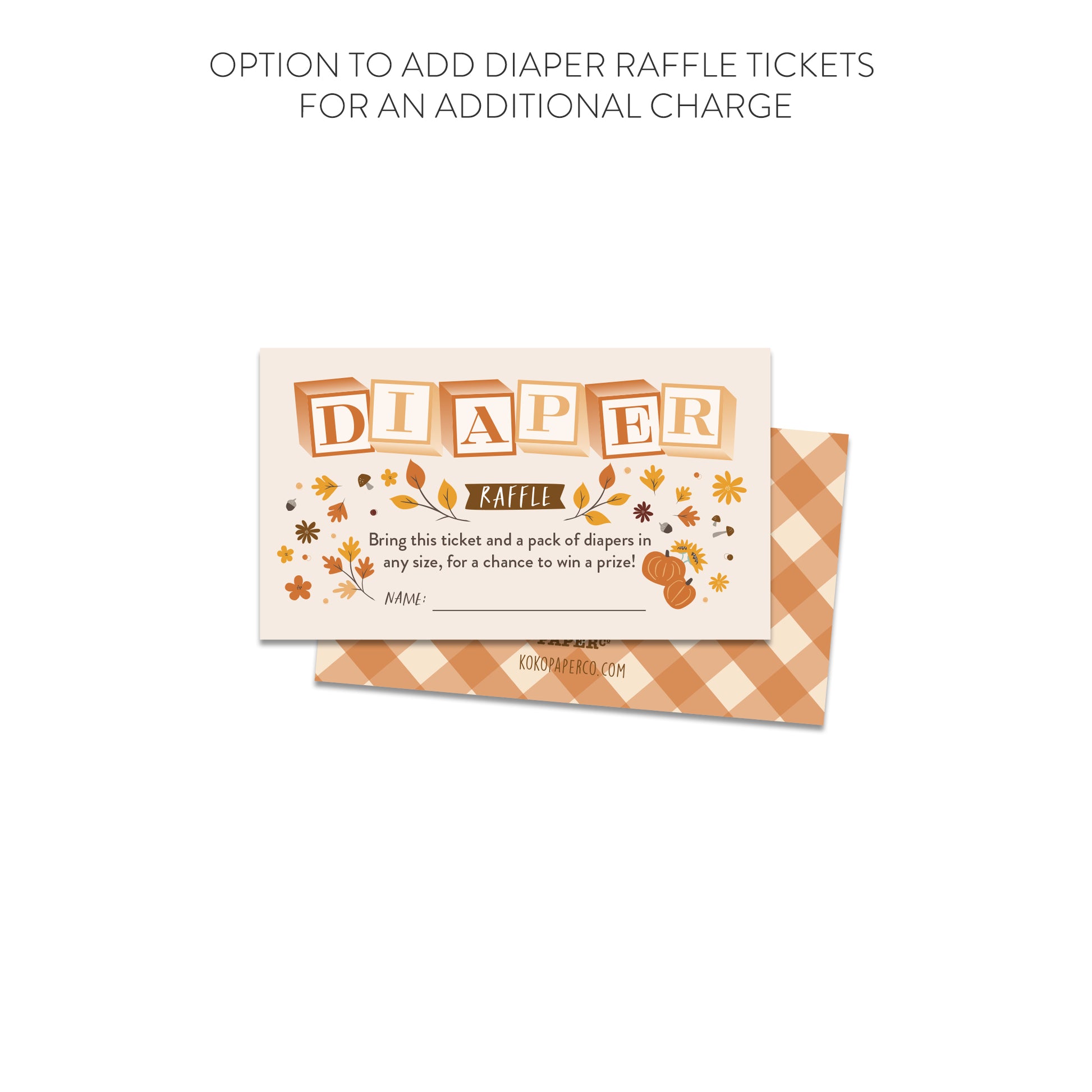 - Option to add matching diaper raffle tickets (3.5" x 2") at an additional cost
