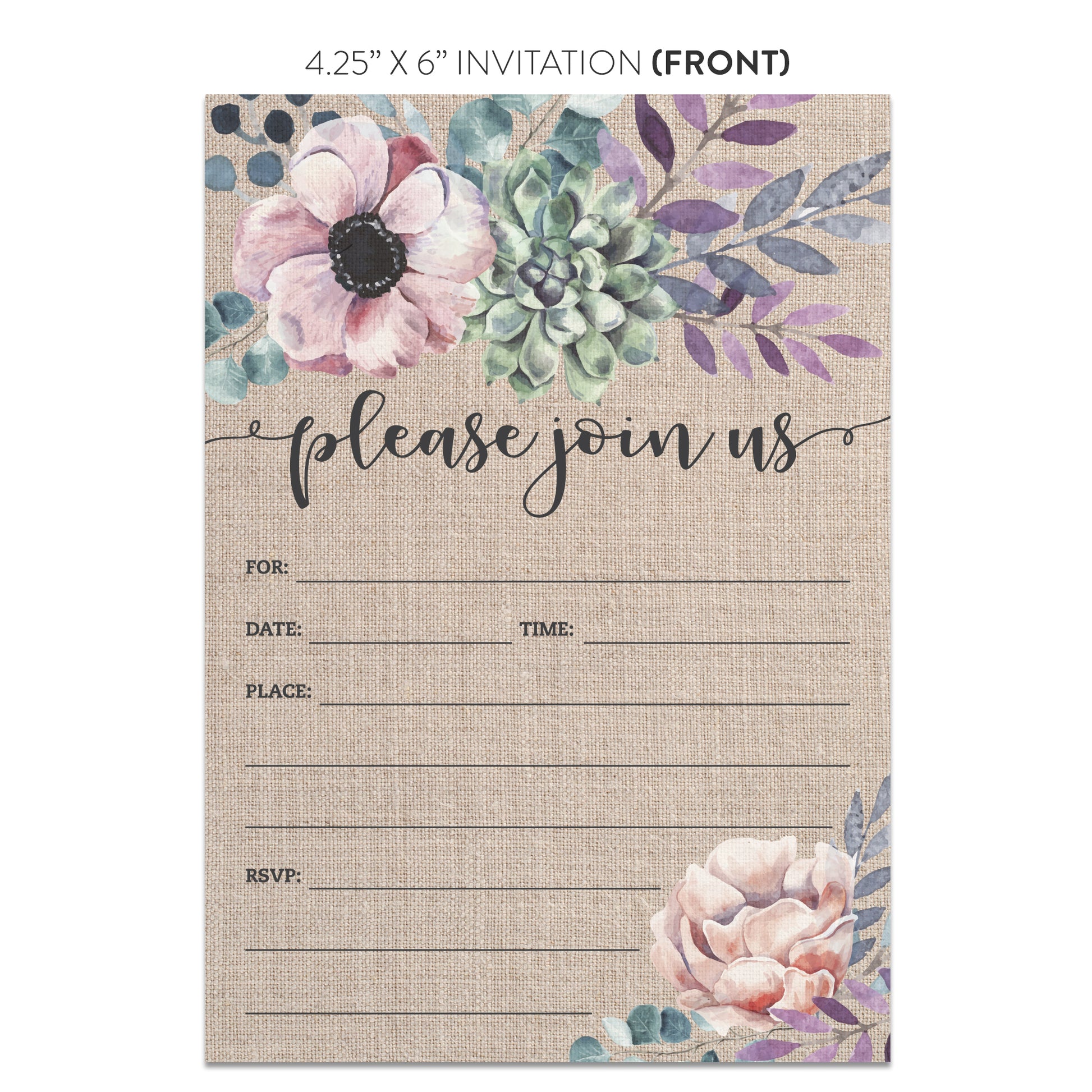 - 4.25" x 6" invitations, printed on front and back